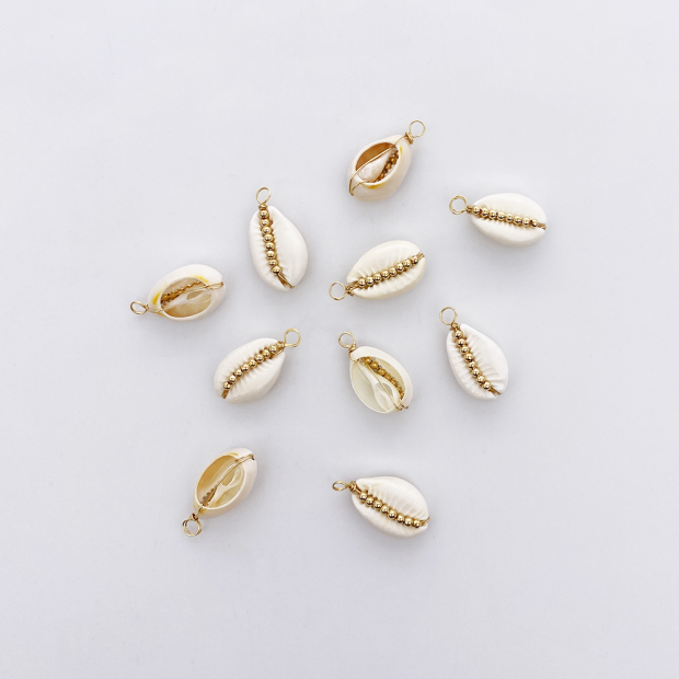 Le détail des perles dorées rend les cauri encore plus joli.